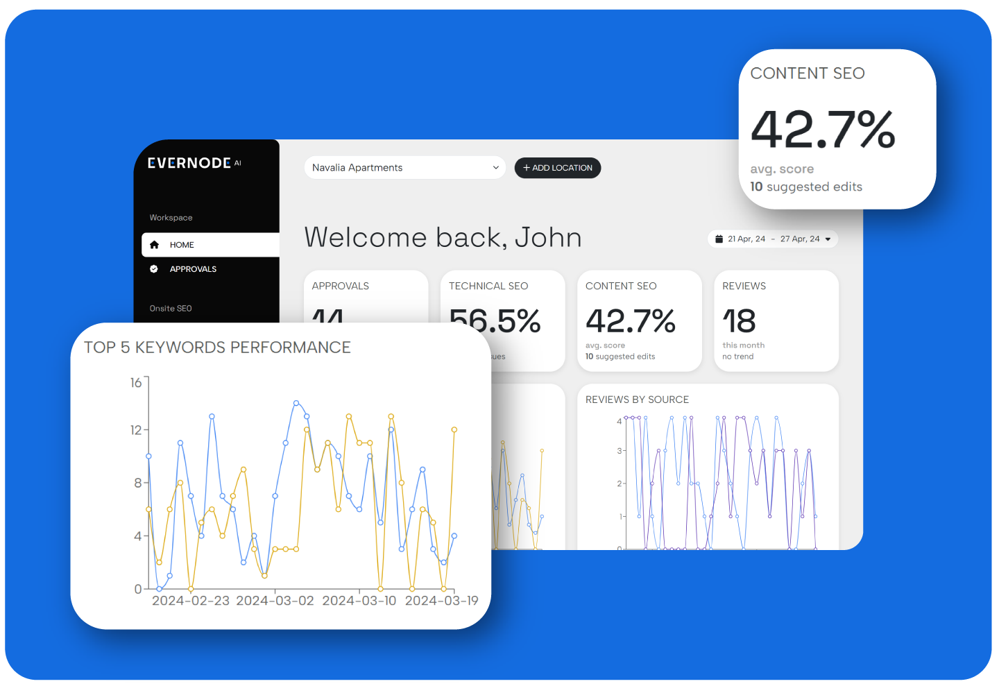 EvernodeAI is equipped with a suite of powerful features designed to elevate the digital marketing strategies of multifamily apartments and real estate developers. At its core, EvernodeAI leverages AI-driven SEO techniques to enact data-driven website optimizations, ensuring maximum online visibility and performance.